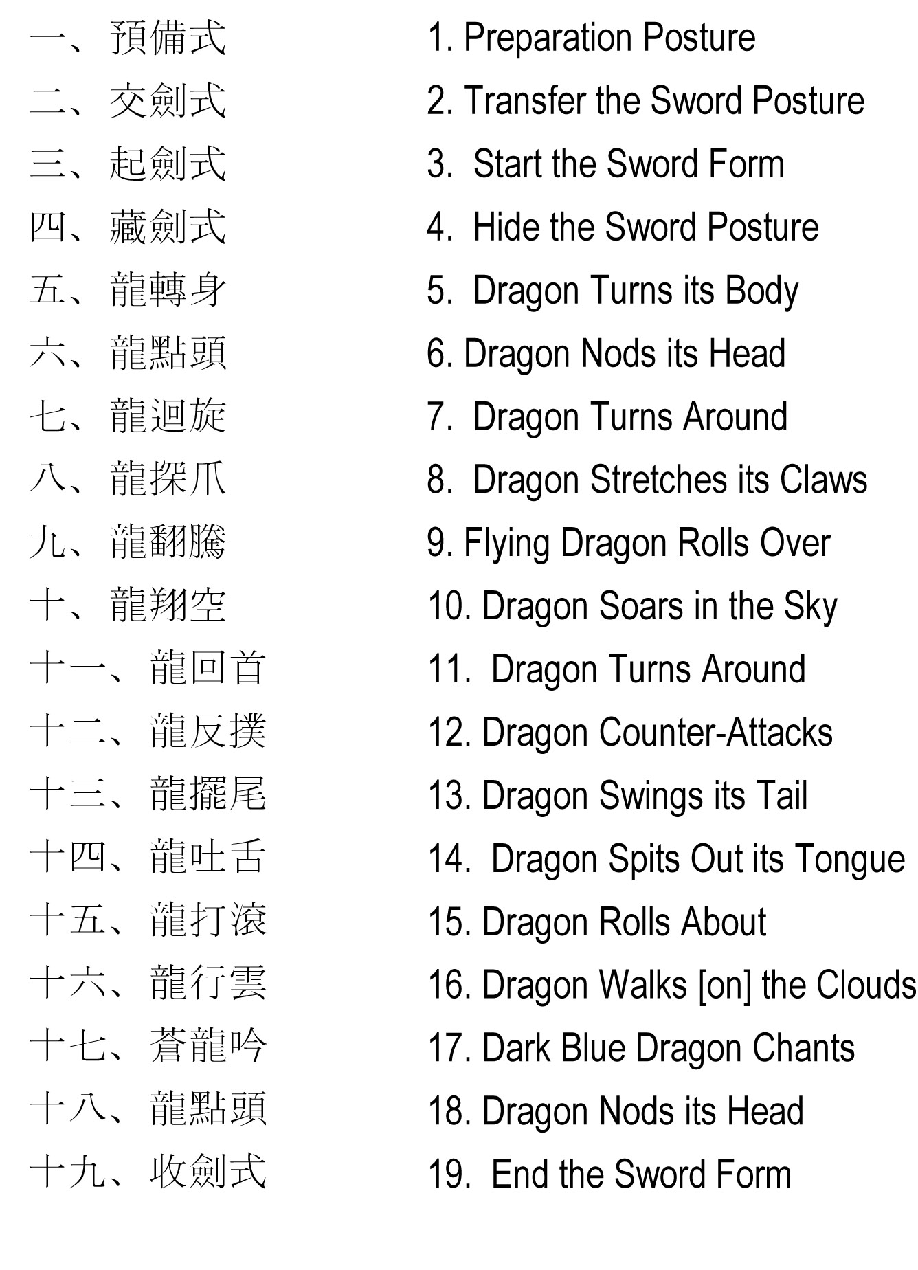 Postures 1 to 14